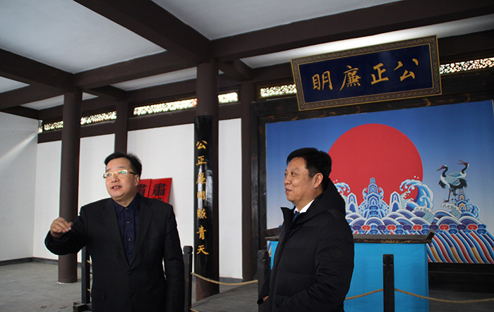 在公署衙門景區(qū),市城投公司董事長曹寶良同志與商南縣城投公司董事長畢宏波同志展開親切交談。