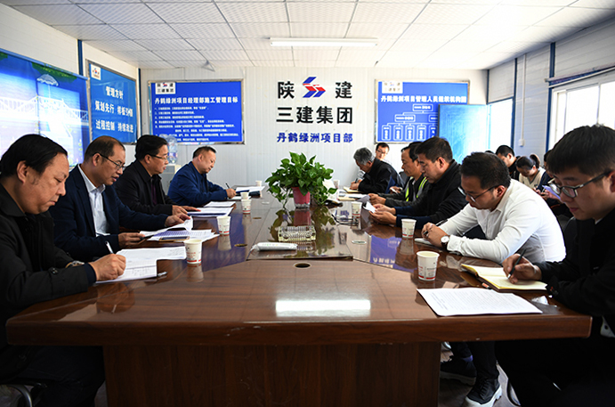 隨后,曹寶良董事長一行在丹鶴綠洲項(xiàng)目部召開會議。會上,董事長對項(xiàng)目目前取得的良好進(jìn)展表示肯定,并提出三點(diǎn)要求:一是項(xiàng)目建設(shè)的核心是推動公司發(fā)展,丹鶴綠洲作為城投公司的優(yōu)質(zhì)戰(zhàn)略項(xiàng)目一定要從項(xiàng)目整體規(guī)劃、工程優(yōu)質(zhì)建設(shè)、從嚴(yán)把控施工質(zhì)量,安全施工各方面綜合考量,穩(wěn)步全面推進(jìn);二是建設(shè)單位要對項(xiàng)目的建設(shè)規(guī)劃胸中有數(shù),做好施工規(guī)劃。工程項(xiàng)目要全部進(jìn)行招標(biāo),所用材料必須經(jīng)過三家以上單位競爭性談判;三是監(jiān)理單位要有嚴(yán)謹(jǐn)?shù)墓ぷ鲬B(tài)度,對一切影響工程質(zhì)量安全的因素嚴(yán)格排查,絕不姑息手軟。
