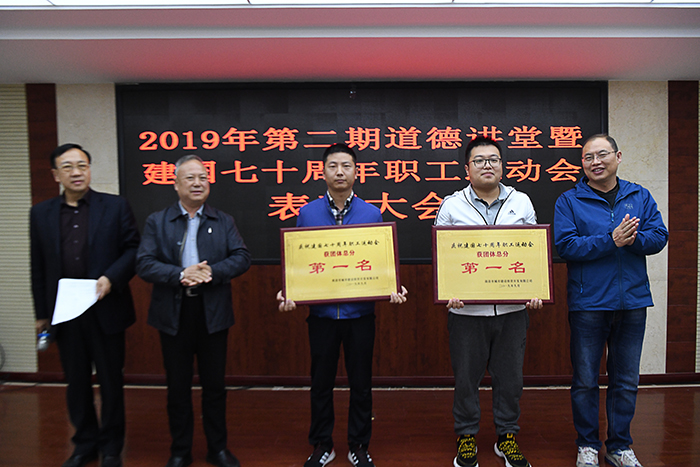 活動第二項內(nèi)容,對市城投公司慶祝建國70周年職工運動會獲獎單位進行表彰,由公司領(lǐng)導(dǎo)對獲獎的工程公司和物業(yè)公司頒發(fā)榮譽獎牌。