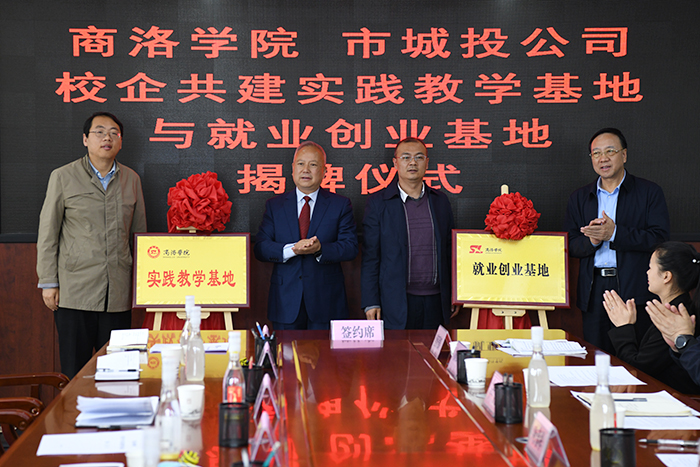 商洛學(xué)院建工學(xué)院院長彭曉邦和公司黨委副書記、總經(jīng)理王昱智簽訂《商洛學(xué)院實踐教學(xué)基地協(xié)議》;商洛學(xué)院建工學(xué)院黨委書記楊小鋒和公司黨委書記、董事長葉春祥簽訂《商洛學(xué)院 商洛市城市建設(shè)投資開發(fā)有限公司共建大學(xué)生就業(yè)創(chuàng)業(yè)基地協(xié)議》,商洛學(xué)院建工學(xué)院黨委書記楊小鋒、院長彭曉邦和公司領(lǐng)導(dǎo)葉春祥、王昱智、盧濤共同為“實踐教學(xué)基地”和“就業(yè)創(chuàng)業(yè)基地”進(jìn)行現(xiàn)場揭牌。