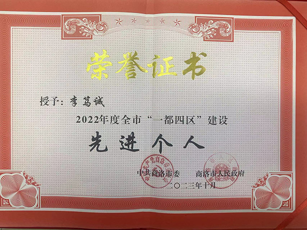 2023年11月1日,中共商洛市委、商洛市人民政府表彰了2022年度全市“一都四區(qū)”建設先進集體和先進個人,公司榮獲先進集體榮譽稱號,駐村第一書記李篤誠同志榮獲先進個人榮譽稱號。